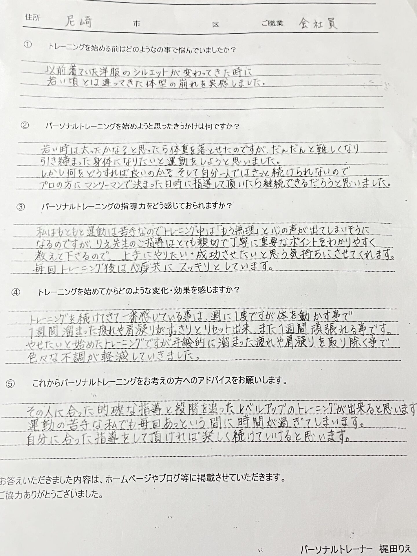 Q.これからパーソナルトレーニングをお考えの方へのアドバイスをお願いします。