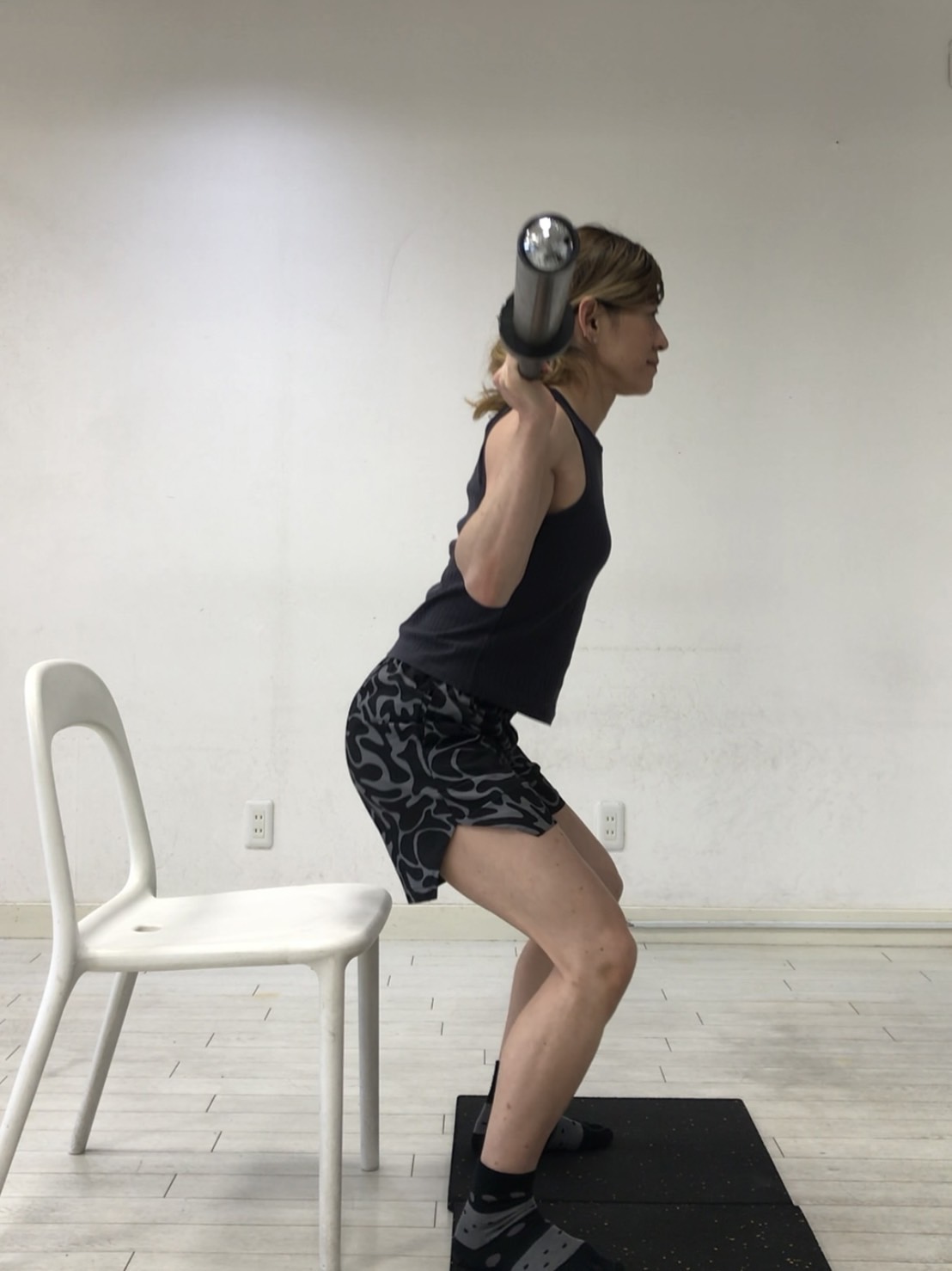 ⑧お尻が膝の高さになるくらいを目標に